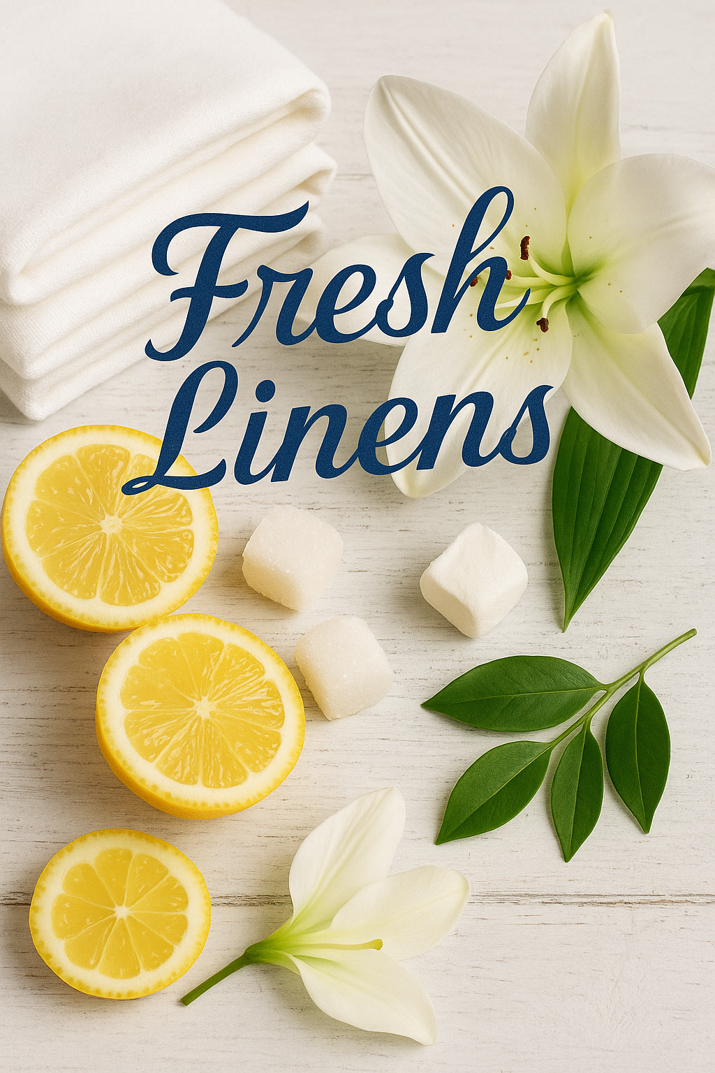 Clean, light, and softly floral — Fresh Linens blends crisp citrus, delicate lily, and sheer musk for that just-washed scent everyone loves.