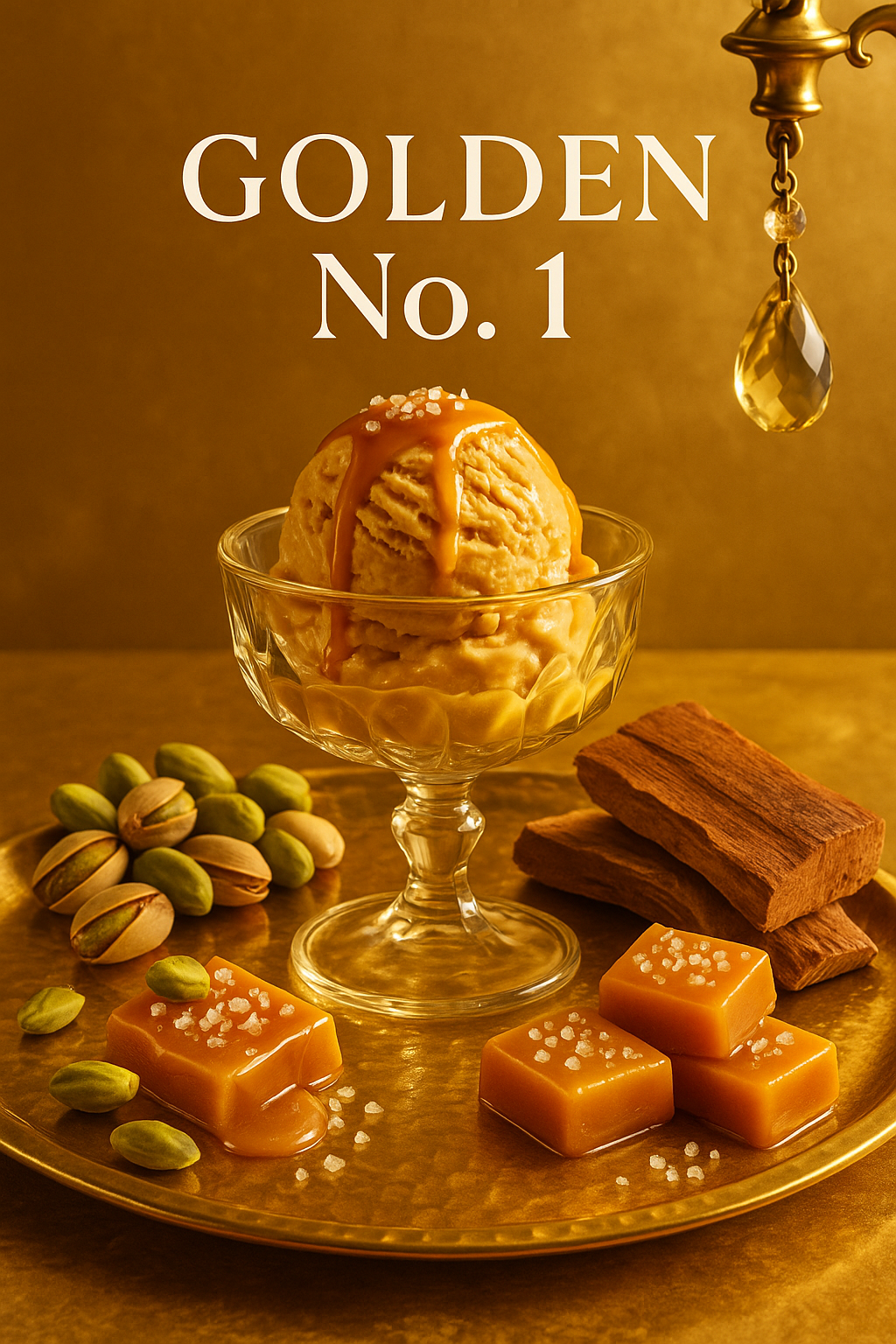 Sweet pistachio with warm, golden caramel.