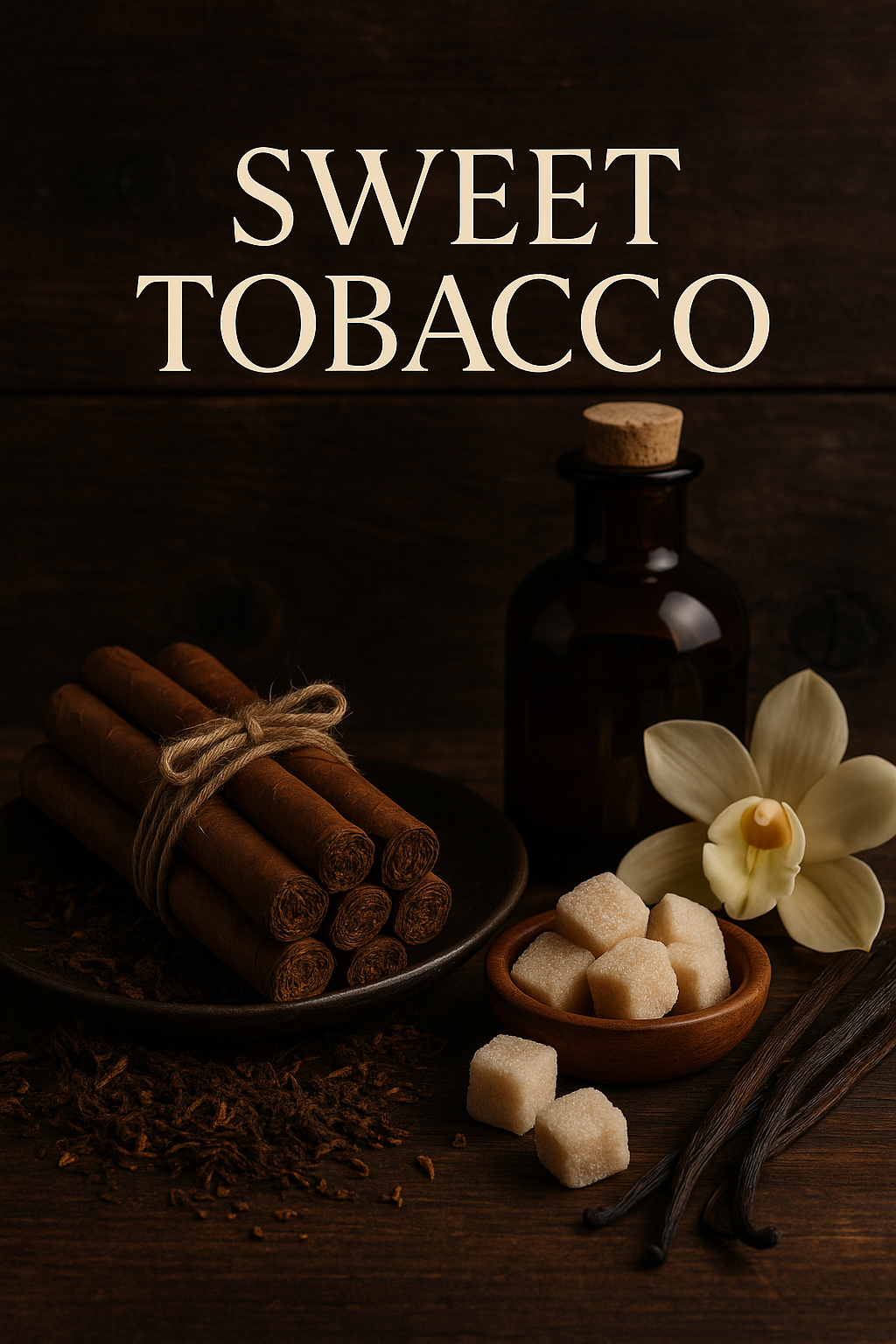 Warm, smooth, and subtly sweet — Sweet Tobacco blends rich tobacco leaf with creamy vanilla and soft sandalwood for a cozy, masculine scent with a touch of charm.